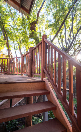 A primary goal of the Hami Hill Sustainable Home is to maintain the site's natural topography and preserve its existing features. A key focus of the development was the conservation of nearly 40 trees on the property, including the 25-meter-tall Jacaranda tree.